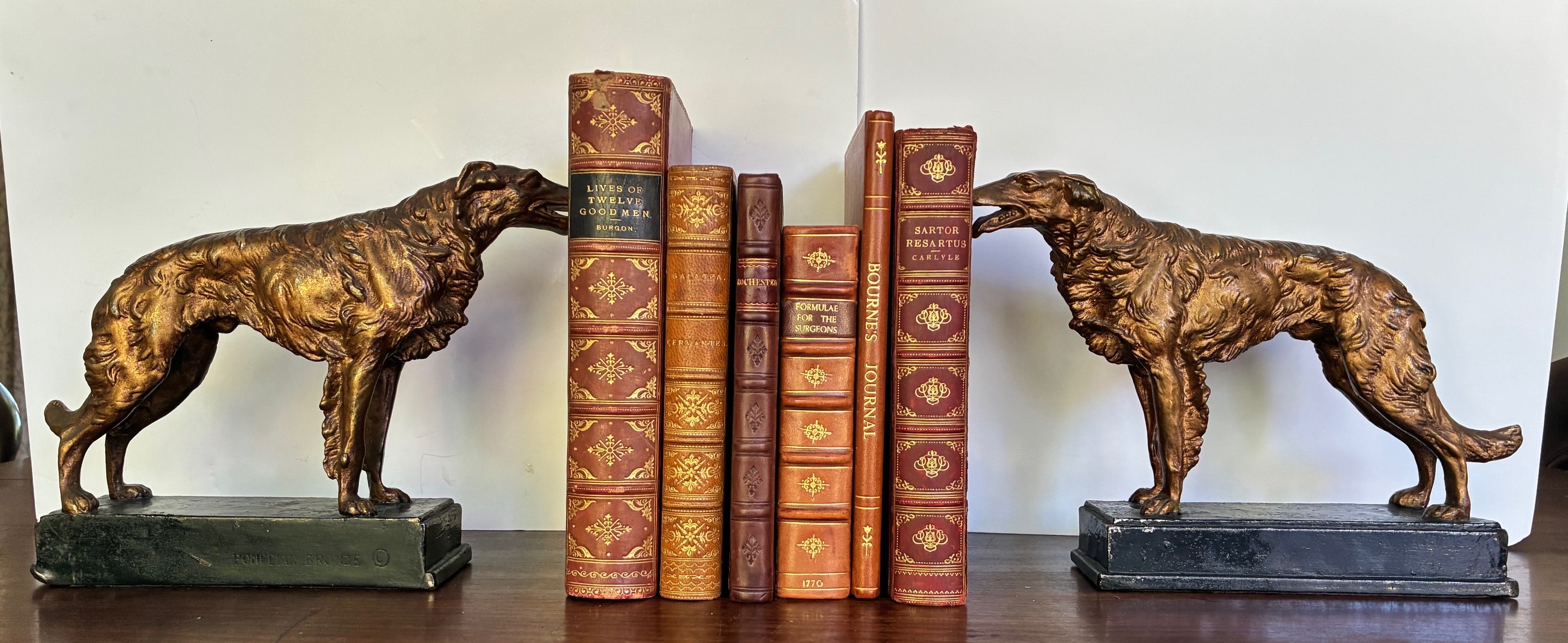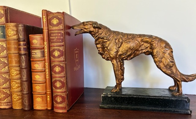 Borzoi [Russian Wolfhound] Bookends by Paul Herzel Pompeian Bronze – c1920’s