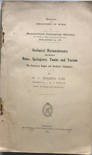 Geological Reconnaissance between Roma, Springsure, Tambo and Taroom [The Carnarvon Range and Buckland Tablelands] – H.I. Jensen