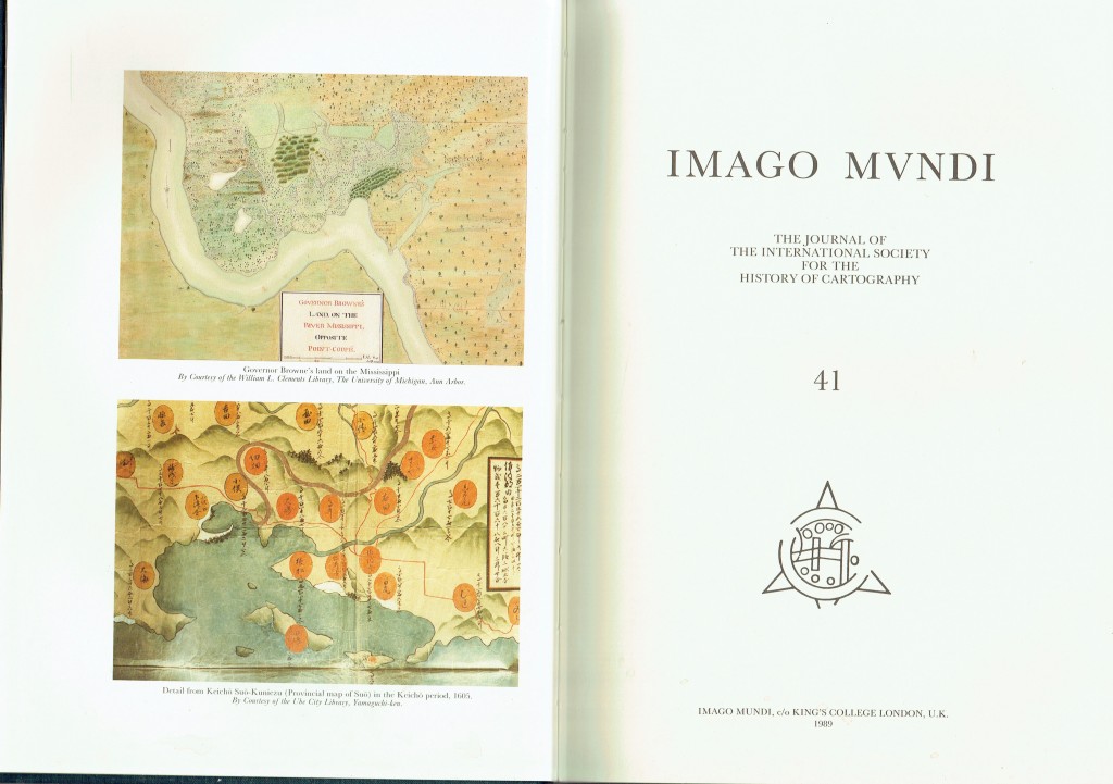 IMAGO MVUNDI (MUNDI) – Vol 41 – 1989 – The Journal of The International Society for the History of Cartography.