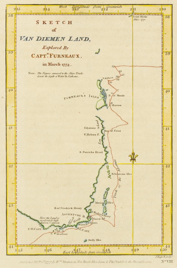 Important Tasmanian Map – Sketch of Van Diemen Land Explored by Captn Furneaux in March 1773 – Published in 1777